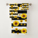 Black White Stripes With Sunflower Flower Bath Towel Set