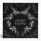 Black and white swirls with swirly frame. Custom text on front back and spine. Secret Families recipes Avery binders.