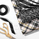 Bold, modern, and festive three-sheet Christmas wrapping paper set. Design features three complementing pattern designs With two different plaid patterns and one sheet designed with Christmas typography with different festive words for the holidays arranged together to create a fun Christmas typographic pattern design. Original designs and pattern artwork by Moodthology Papery.