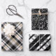 Black & White Tartan Plaid Christmas Typography Wrapping Paper Sheets
