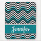 This bold, beachy design features eye-catching abstract geometric ocean waves in black, white, teal and aqua or turquoise, along with a black and white edged teal ribbon bearing a customizable name in white in popular script typography. You can personalize this item for yourself or a loved one by changing the name.