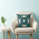 Black White Teal Green Oriental Mosaic Pattern Throw Pillow