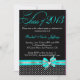 Black White Teal Polka Dot Graduation Invitation