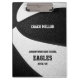 This basketball clipboard for a girl's or boy's basketball coach features the image of an abstractly oversized basketball that has alternating black and white recolored panels on the front and back - customize coach's name plus the school and mascot name and school year/season on the front - by katz_d_zynes