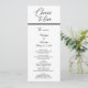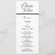 This all-in-one wedding menu and program design features elegant script headers paired with refined serif typography for the details. The black and white color palette emphasizes timeless clarity and visual harmony. Designed for couples who value simplicity, elegance, and a cohesive typographic aesthetic throughout their wedding day.
