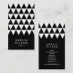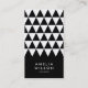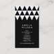 This modern social media vertical business card features a geometric design of white triangle pattern against a black background. It is ideal for various professions like Consultants, Hair and Makeup Stylists, Jewelry Designers, Bloggers, Interior Designers, Fashion Stylists, Event Organizers, Wedding Coordinators etc; anyone who wants both a minimalist design and a way to let the people they meet in real life know how to find them and their work/portfolio online and on social media.