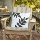 Black & White Tropical Outdoor Pillow. Large. Tropical foliage.