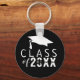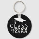 Modern Black & White Typography Class of Graduation keychain. Trendy white typography on a black background with a white graduation cap. Customize with the year number. Make a great gift and keepsake for a graduate.