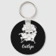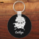 Take a trip to Venice with this personalized keychain. It features an illustration of a Venetian carnival mask in white against a black background and is ready to be personalized with a name below in white script lettering.