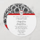 Black & White Victorian Damask Red Trim Wedding Invitation