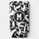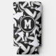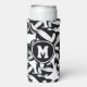 This volleyball themed canned beverage cooler features a pattern of seemingly endless, randomly arranged black & white volleyballs on a white background - personalize with the athlete's monogram - by katz_d_zynes
