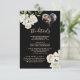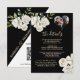 Romantic and unique black and white floral Wedding Details Enclosure card. Gold lettering and touches of calligraphy are a perfect accompaniment to the beautiful flowers along with the lovely photo. For any design question or additional customization and / or matching items, just send a chat or an email to charmdesignstudio@rcn.com and we'll be delighted to assist.