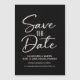 This clean and romantic wedding Save the Date thin magnet card has a black and white scheme and hand-lettered cursive typography. Customized with your names, the date of your wedding, the location, and your wedding website address. It's a gorgeous design, perfect for a simple wedding or engagement announcement.