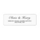Wedding return address labels in elegant white with chic black script. Easily add your custom name(s) and address.