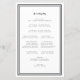 Elegant, minimalist black & white wedding ceremony program features a simple modern design with a double framed border in black on a crisp white background. Traditional, classic wording provides timeless sophistication. Personalize wedding ceremony details for your guests in trendy black calligraphy lettering and script. The back of the card matches with black on crisp white and is all about your wedding party. For optimal results replace template details with your own details leaving space between paragraphs as in the example. Capitalize & use all lower case where specified. Feel free to contact me at invitationsuites@gmail.com or with the message feature if you have questions regarding this or any of our products or have a custom color request.