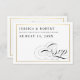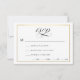 A traditional and elegant black and white calligraphy script wedding rsvp card with gold border. "Rsvp" script on one side with reply by date, and guest name and attendance, meal choice on the other side. Delete the lines in the text field that you dont need. You can also remove the gold border.