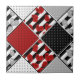 Black white with red retro patchwork ceramic tile