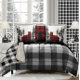 Black & White Woodland Forest Buffalo Plaid Bear Throw Pillow