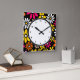 Black white yellow and pink Flower pattern Square Wall Clock