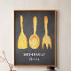 Black White Yellow Kitchen Utensils Chalkboard Poster