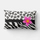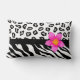 Black & White Zebra & Cheetah Skin & Pink Flower Lumbar Pillow