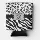 Black White Zebra Leopard Skin Monogram Can Cooler