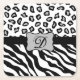Black White Zebra Leopard Skin Monogram Square Paper Coaster