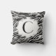 Black white zebra print pattern custom decorative throw/toss pillow featuring an animal print pattern and your text- monogram in a grey frame. This trendy, cute girly monogrammed design is perfect for a retro/vintage or modern/contemporary style home.