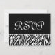 This black and white with pink zebra print design is an elegant way to handle your RSVP needs, and is currently featured on a basic paper. You can experiment with different paper types to get just the look you want. If you want a glossy finish (which is only applied to the front side of your card) choose the linen, basic or metallic papers. If you want a matte finish, choose the specked, felt, or recycled. You can also change the background color or the text color for a different look.