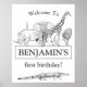 Black & White Zoo Animals Birthday Welcome Sign