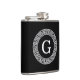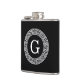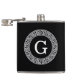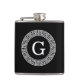 Black Wht Greek Key Rnd Frame Initial Monogram Hip Flask
