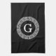 Black Wht Greek Key Rnd Frame Initial Monogram Kitchen Towel