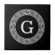 Black Wht Greek Key Rnd Frame Initial Monogram Tile