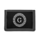 Black Wht Greek Key Rnd Frame Initial Monogram Tri-fold Wallet