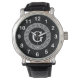 Black Wht Greek Key Rnd Frame Initial Monogram Watch