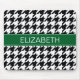 Black Wht Houndstooth #2 Forest Grn Name Monogram Mouse Pad