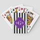 Black Wht Stripe Purple Quatrefoil 3 Monogram Poker Cards