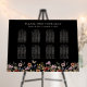 Black Wildflower Boho Seating Chart Foam Board. Make a striking first impression with this horizontal seating chart featuring the signature moody black background and romantic fall florals of the Moody Black Boho Wildflowers Collection. Wildflowers, dried grasses, and foliage in earthy rust, terracotta, and tan tones add soft beauty to your organized seating display. Ideal for wide display areas, this format provides a beautiful blend of utility and artistic flair. Design your layout with heart—start creating your seating chart today.