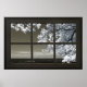 Black WIndow Frame Ominous White Tree Blossom View Poster