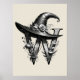 Black Witch Hat Witchy Letter W Custom Initial Poster