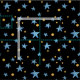 Black with blue stars and yellow dots whimsical fabric