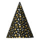 This festive party hat is the perfect way to celebrate a birthday or ring in the new year. A classic black party hat with faux gold and white polka dots.