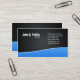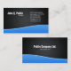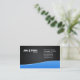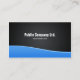 A modern black business card design with a blue wave design element. This simple, professional design can be used by any business or individual. The simple blue wave business card template is one sided, featuring the name title on the left side and all your contact details on the right side of the card.