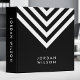 Modern minimalist binder featuring white chevron pattern against a black background that you can personalize with your name. Great for office or school.