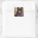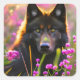 black wolf in pink flowers square sticker