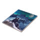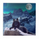 A ceramic gothic tile featuring a hauntingly beautiful black wolf surrounded by snowy mountains under a moon lit, aurora borealis sky.