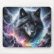 A stunning depiction of a black wolf emerging within a vibrant celestial sky, surrounded by dramatic lightning and colorful cosmic clouds.