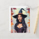 Black Woman Witch Autumn Leaves Postcard