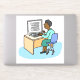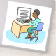 Sticker showing a black woman working in an office at her computer. Black female office worker.