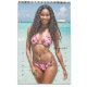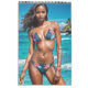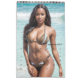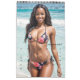 This calendar collection of beautiful black women features 14 images (12 months + front and back cover). The melanin-rich beauties are all modeling swimsuits (bikinis), mostly on the beach with the ocean behind them. The pretty ladies were dreamed up in a digital collaboration.
